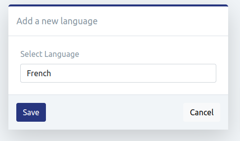 - Click on the Add button to add language. Select a language you want to add and click on the Save button.